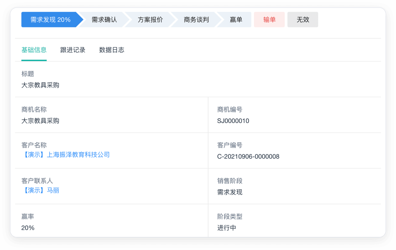 - 商机阶段推进器,有效规范销售过程