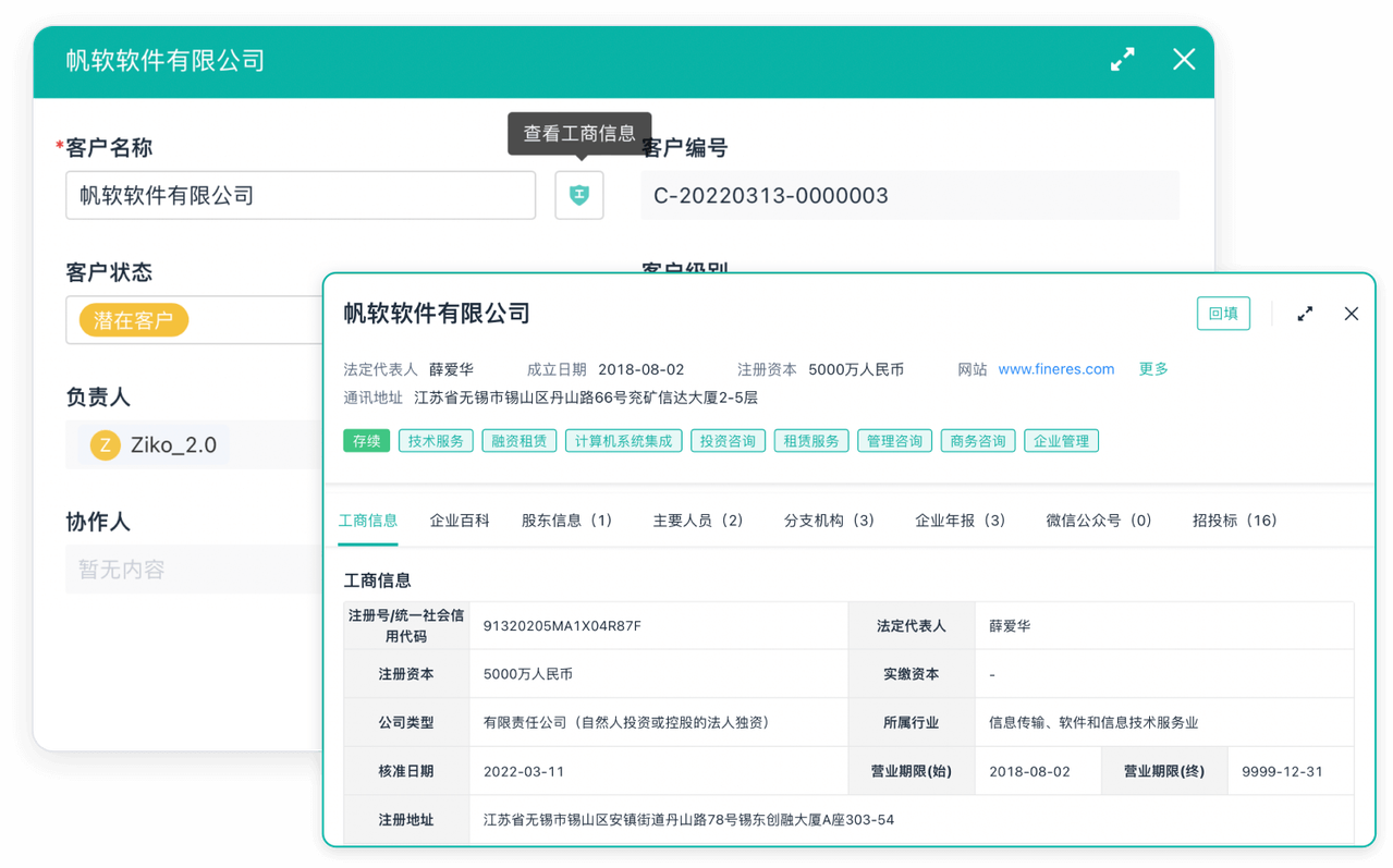 - 工商信息自动查询填充,无需人工调查